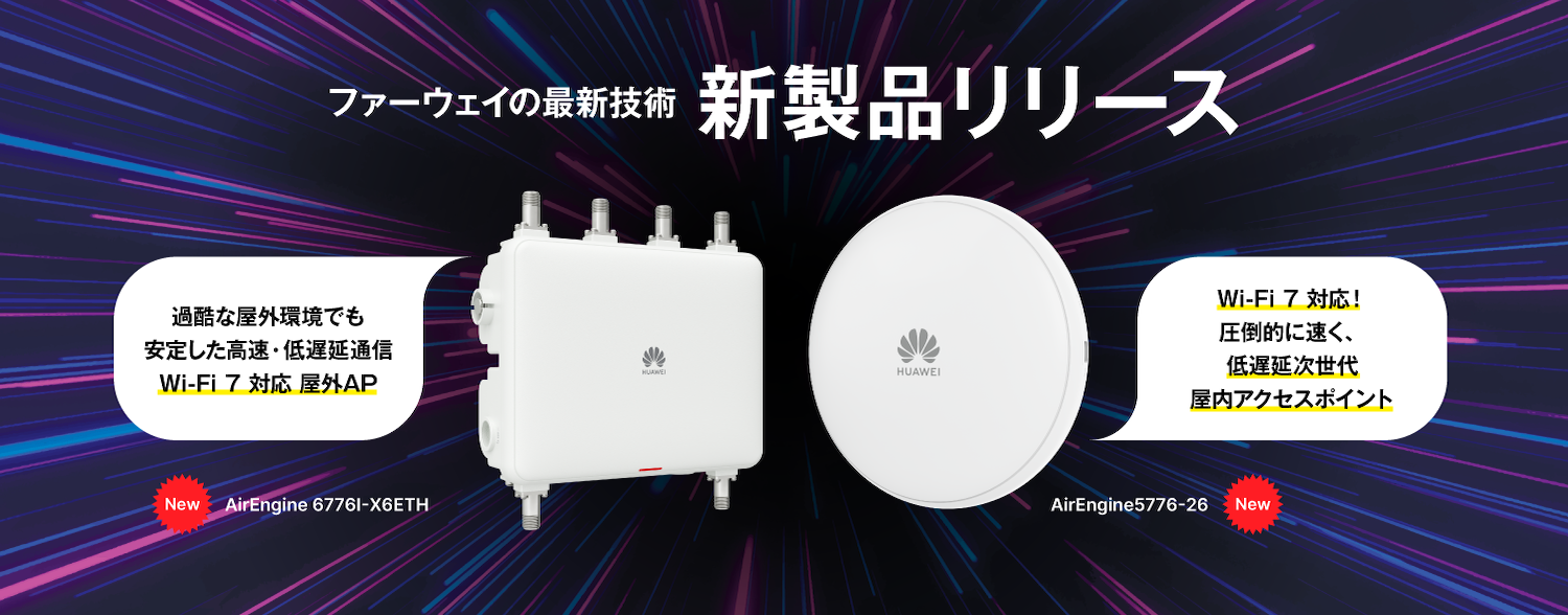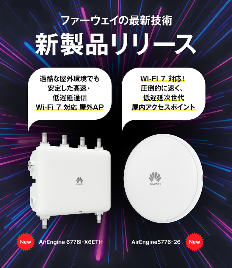 独自アクセスポイントHuaweiの無線LANアクセスポイントは、電波制御・アンテナ設計・干渉回避といった無線品質を最優先に設計されています。キャリアの高密度環境や移動体通信で培われた技術力で、安定した通信と低遅延を実現し、業務用途に最適な無線環境を提供します。
